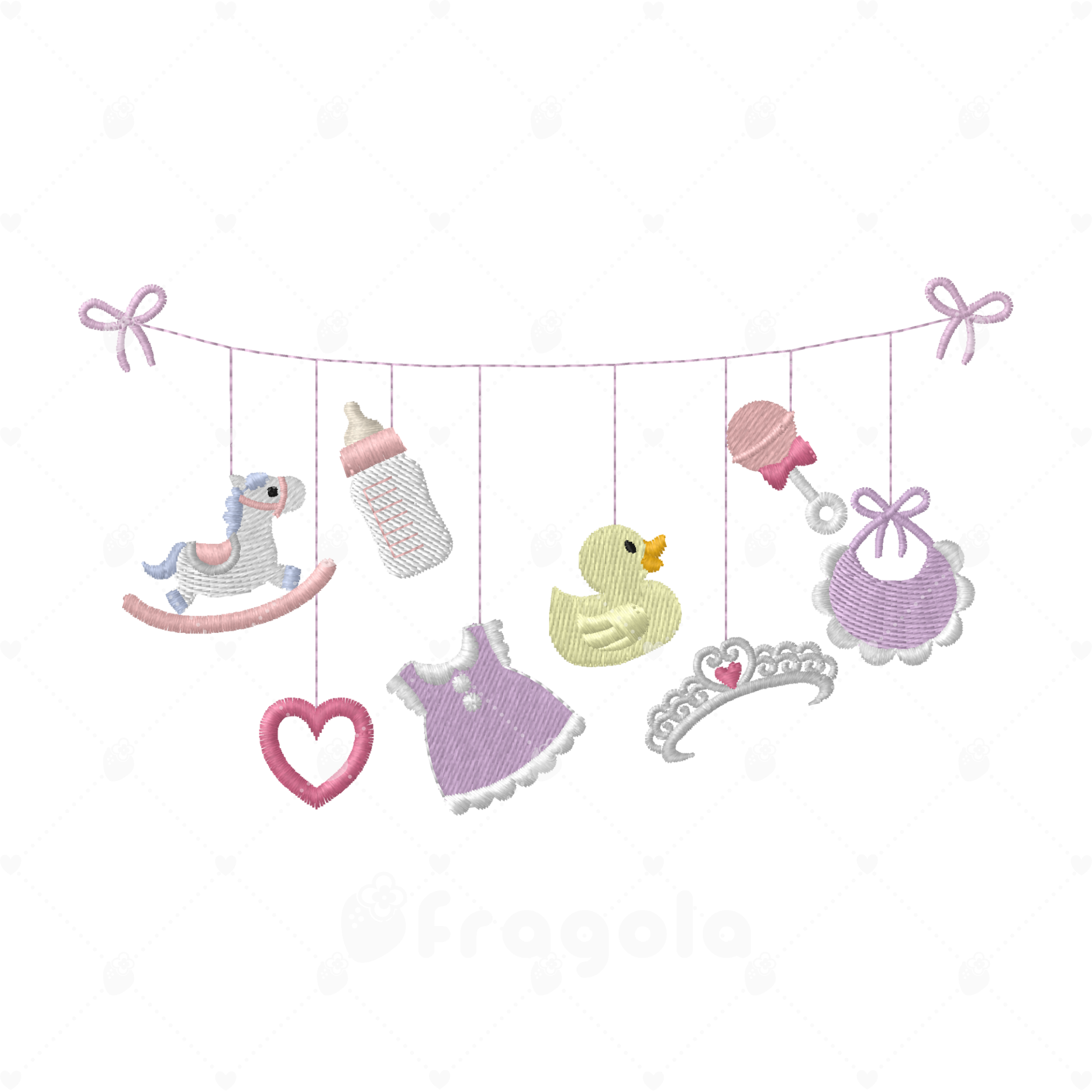 ティアラ・哺乳瓶・スタイ・ドレス・アヒル・ハート・ガーランド・ガラガラ・ロッキングホース