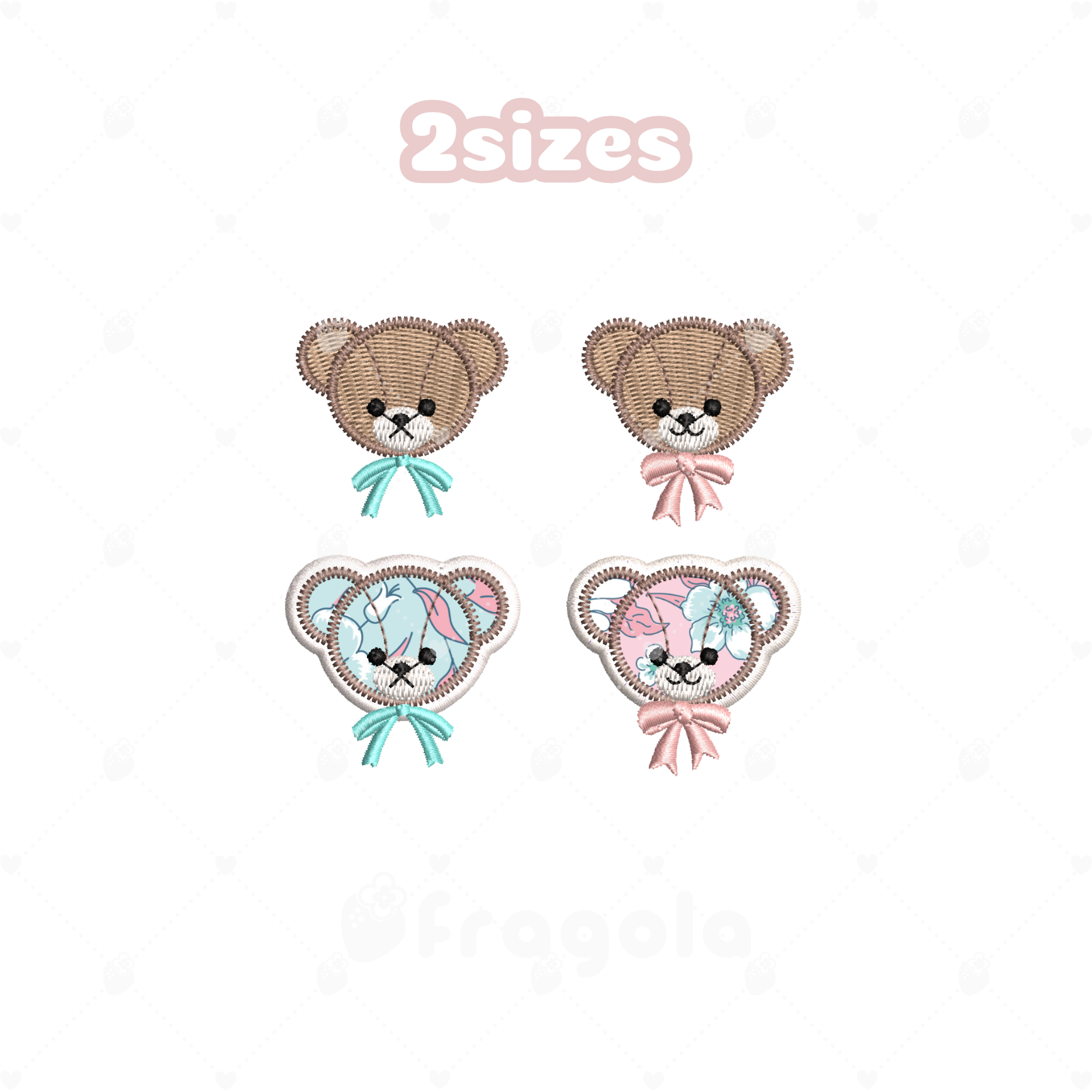 リボン付きくま刺繍データセット(刺繍+アップリケ/全8ファイル)