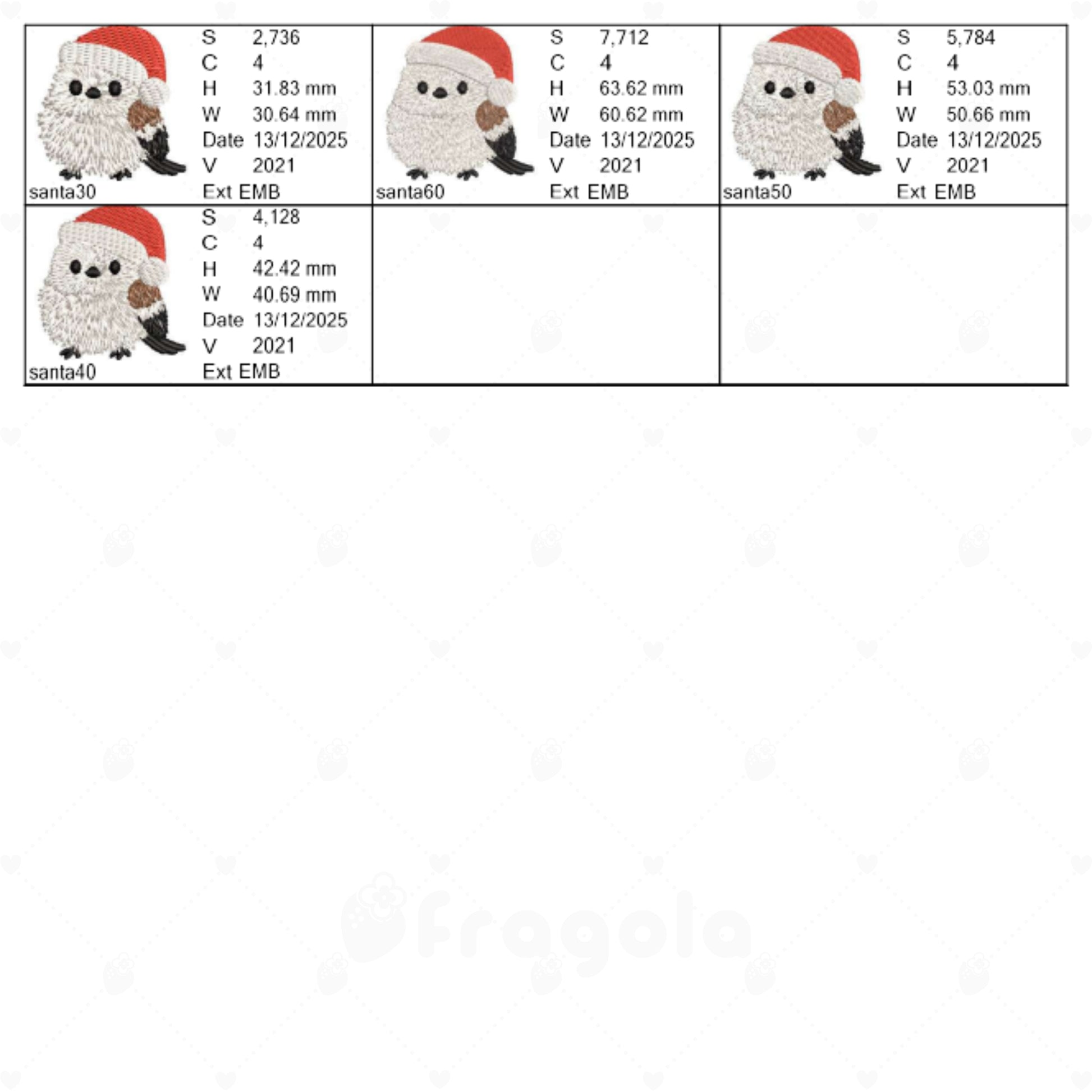 クリスマス シマエナガ 刺繍データ(サンタ帽・4サイズ)