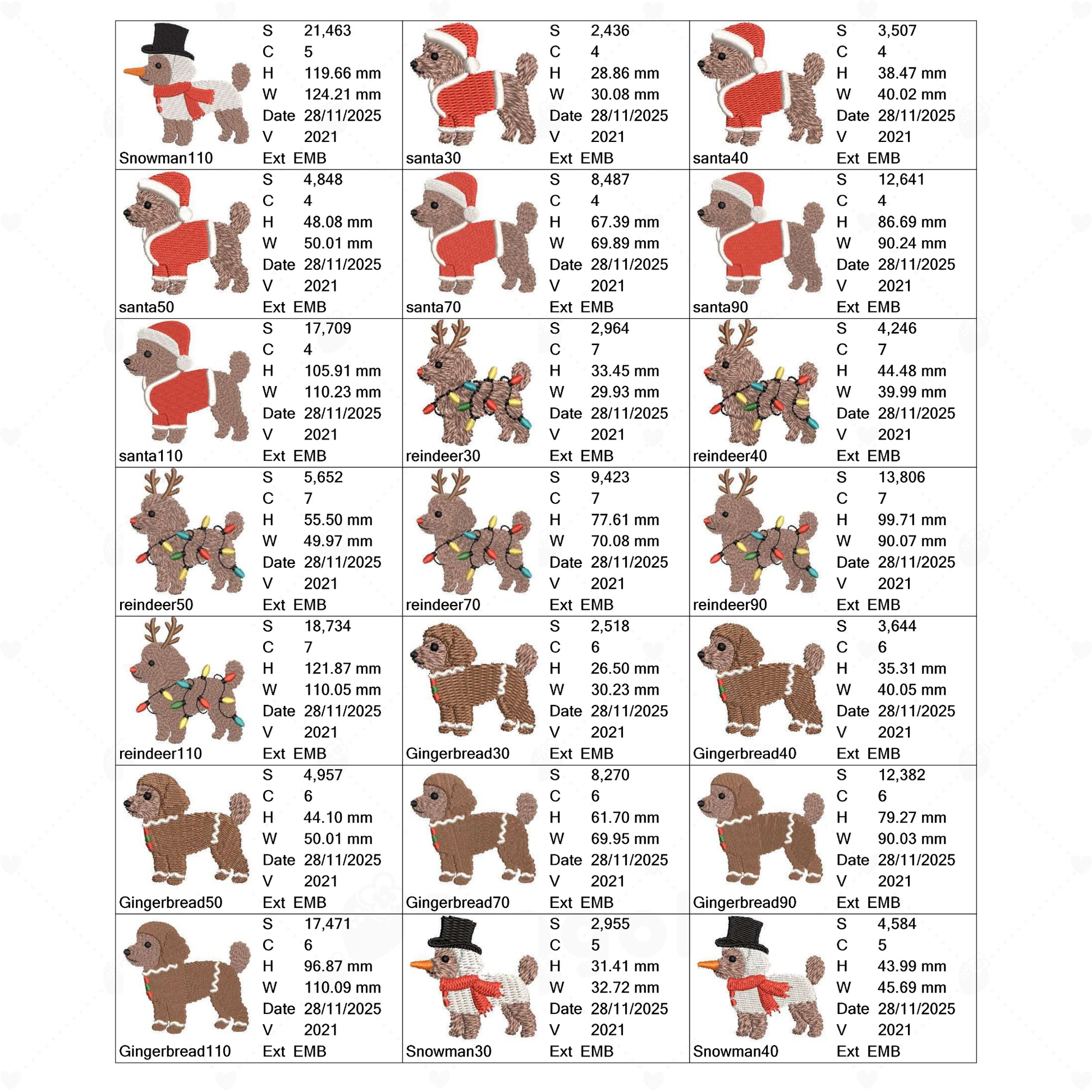 クリスマスモチーフのトイプードル刺繍データ4種類セットです。
